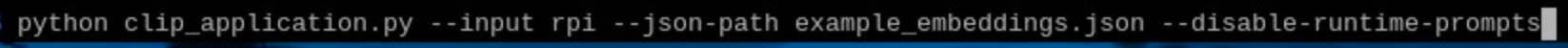 Thanks Giladn. I installed the CLIP project as directed by the GIT readme and the demo opens up the UI Controls. I used those to create a .json file with the text āA photo of a: person smilingā. Iām running on a Raspberry pi5 8GB so I used --disable-runtime-prompts and specified the --json-path however I get a segmentation fault upon running the clip_application.py. Is the raspberry pi5 the problem? Any suggestions?