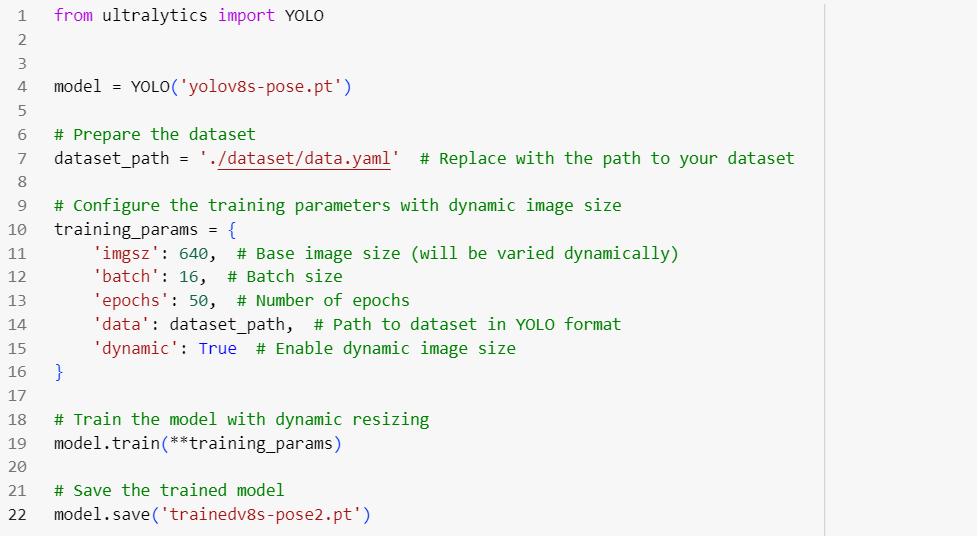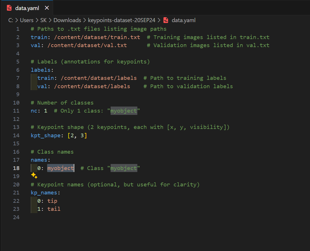 My training data contains images of resolution 640x360. And also my data contains 2 keypoints. And these things changes the output of the network. And I am considering those changes in yaml file. Probably this is the reason…