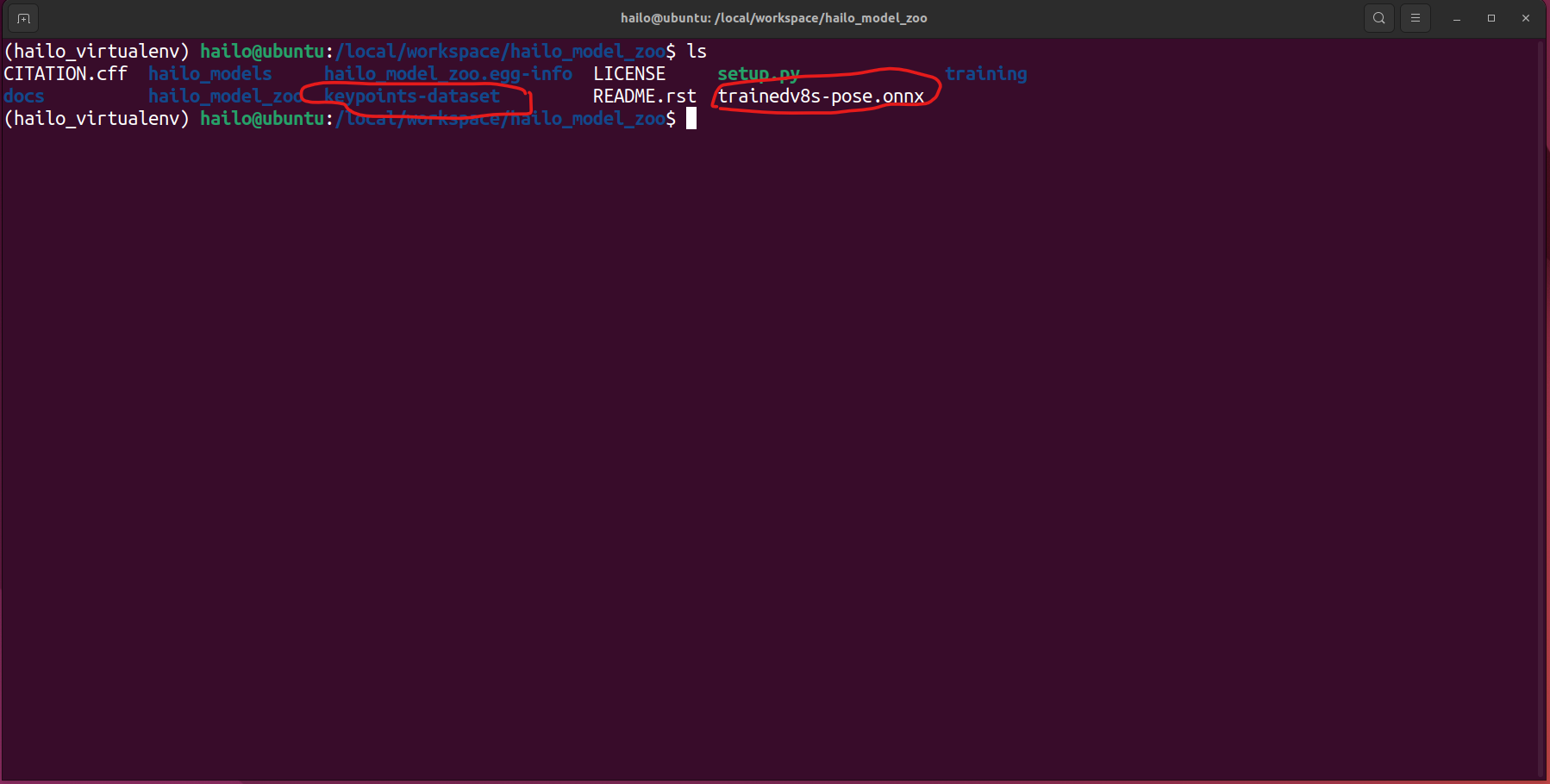 I have a custom trained model on yolov8s-pose. I trained and converted to onnx outside hailo env (hailo_model_zoo does not have training for pose model). And copied trained model and dataset into hailo env.