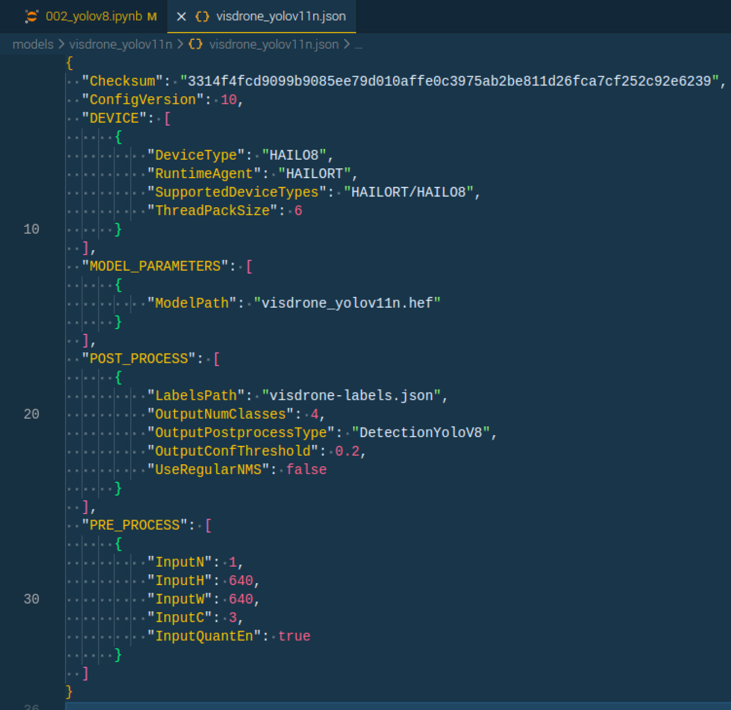 This is because yor compiled hef has in built nms from Hailo whereas the json specifies DeGirum’s postprocessor. You can follow the json from this model that can use Hailo’s built-in nms: DeGirum AI Hub. Please let me know if you need more help. We published a detailed guide about this: User Guide 3: Simplifying Object Detection on a Hailo Device Using DeGirum PySDK - Guides - Hailo Community