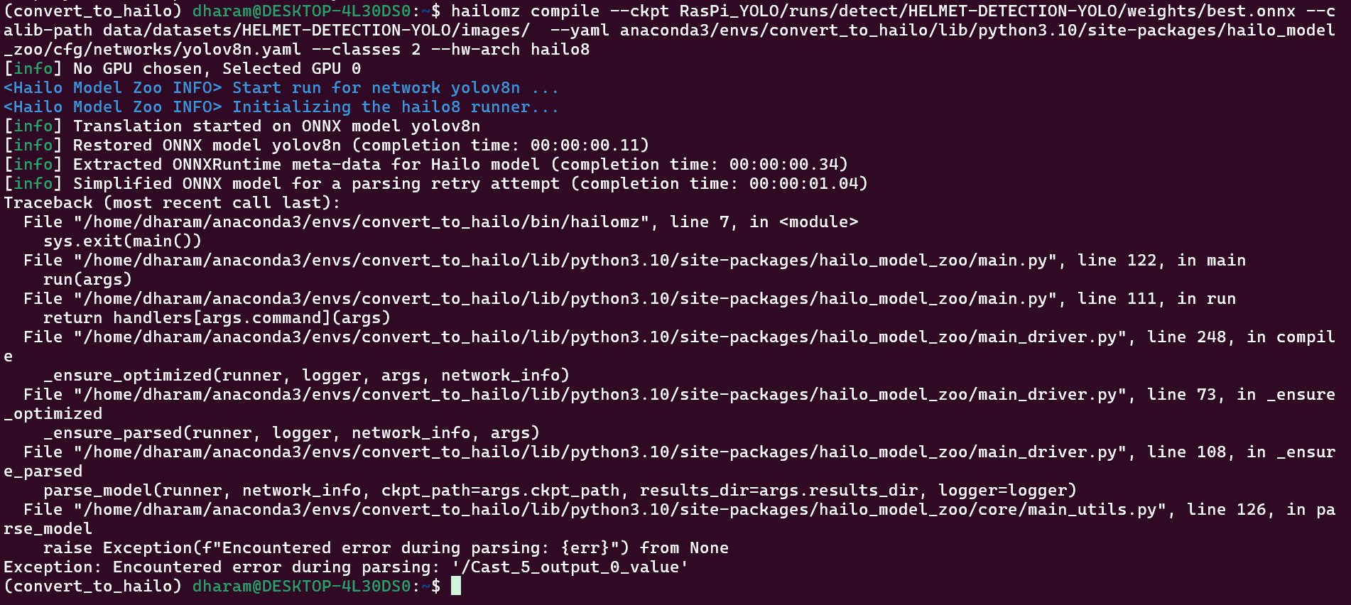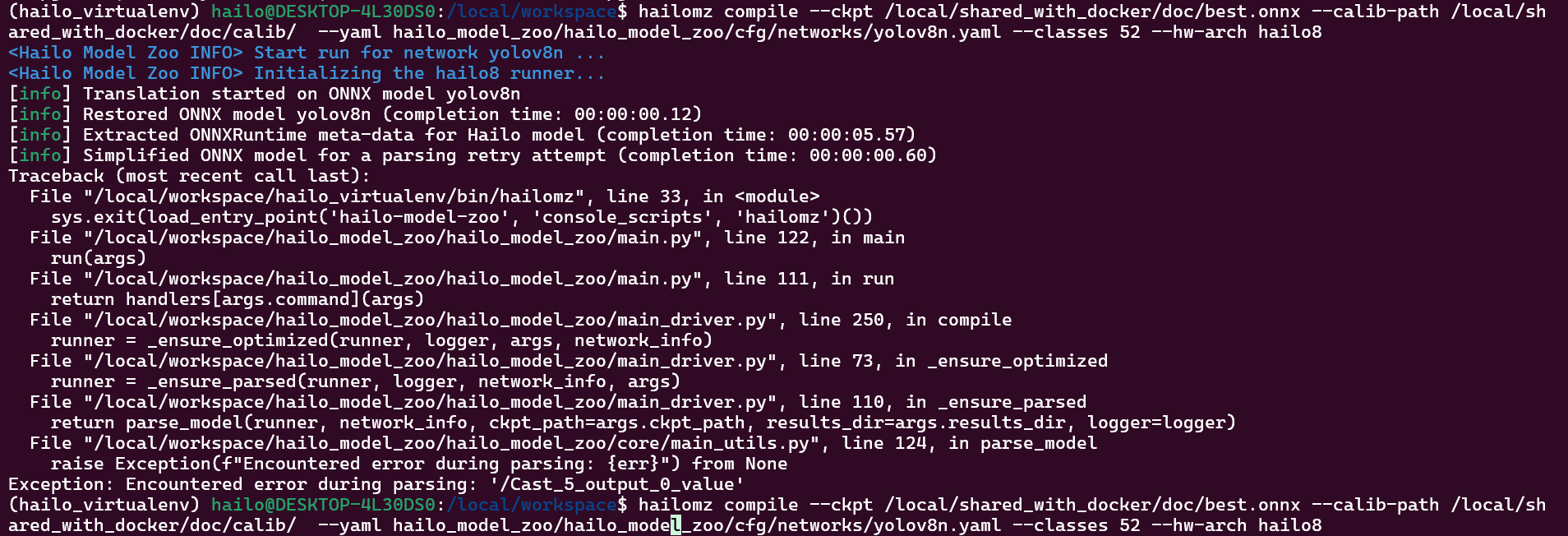 Hi, I am getting this error when running hailomz compile. Is it known error ?