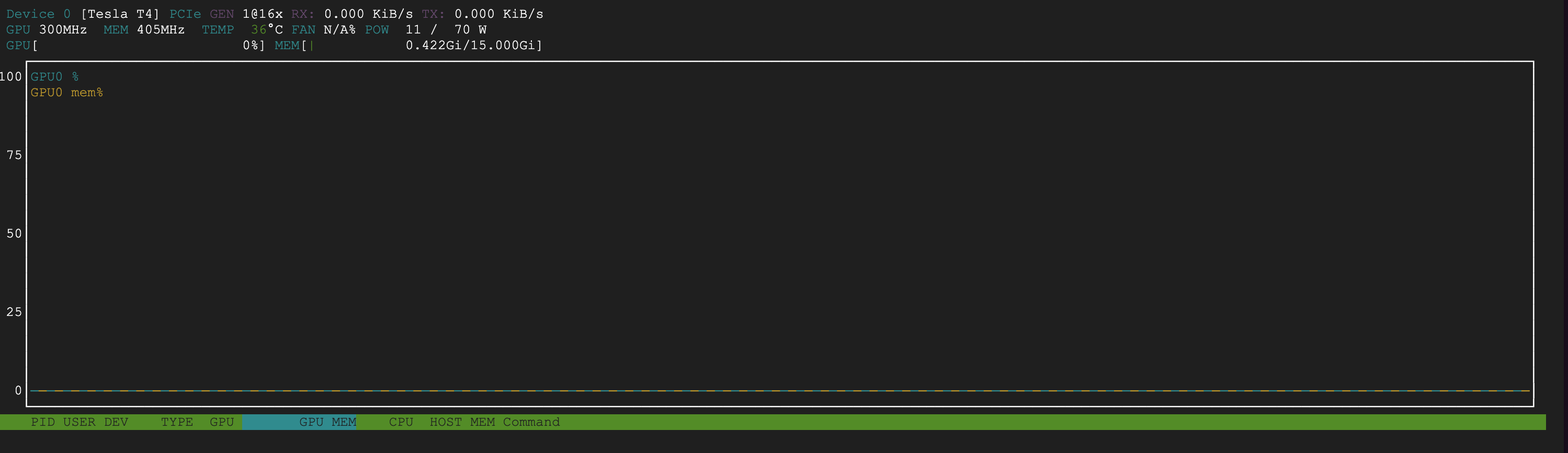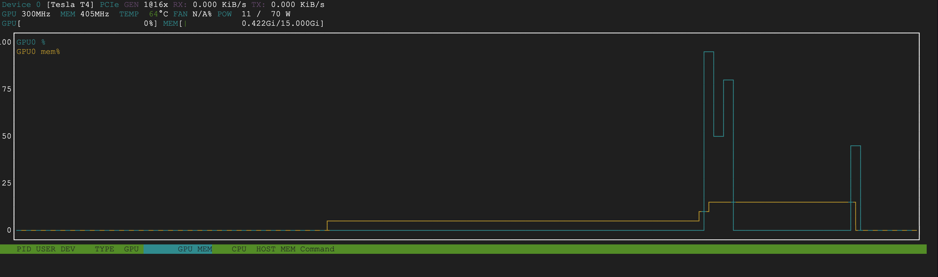 @Erez my bad, the command to use to monitor the GPU is nvtop (I corrected the original post).