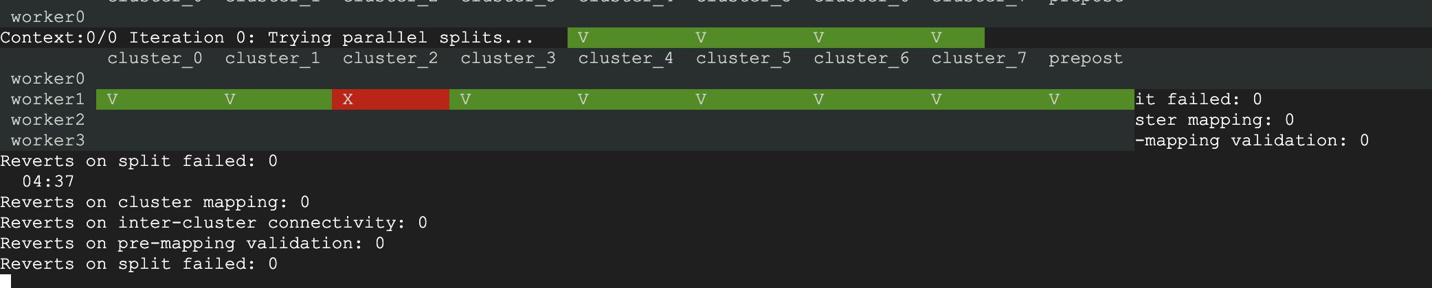 worker0 * * * * * * * * V V V * * V V V