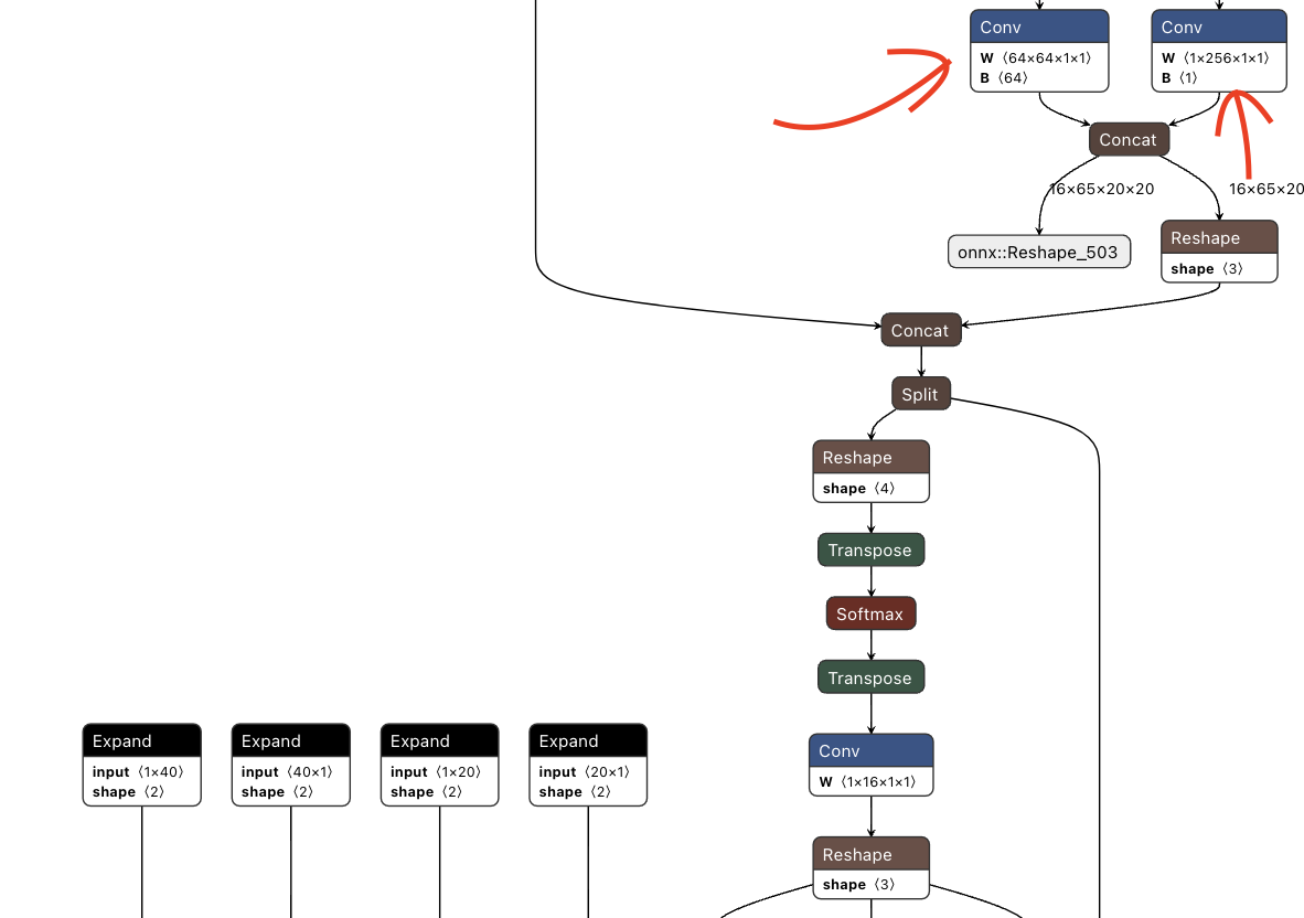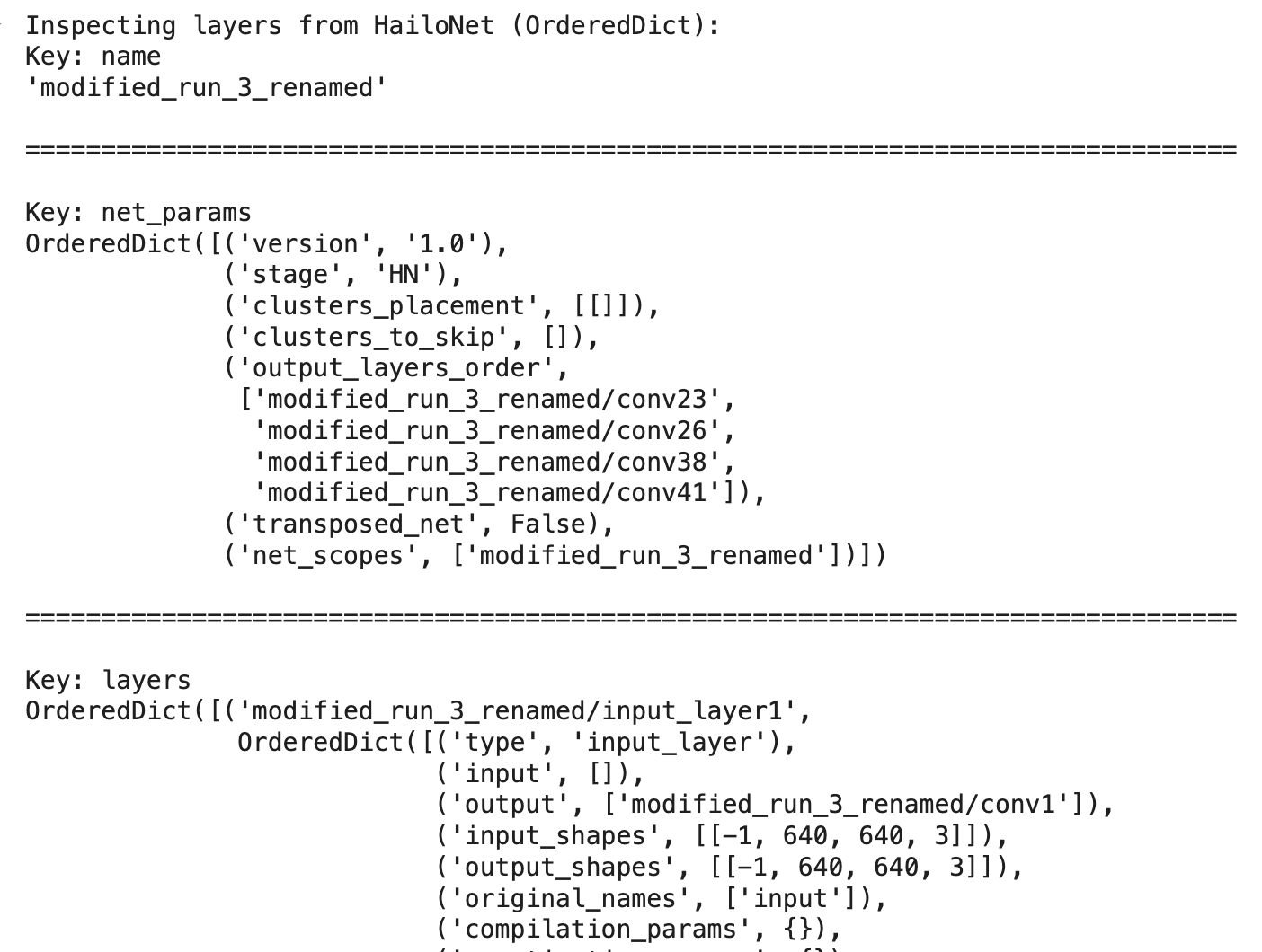 In our case, from YoloV8 to YoloV11 all use the “same architecture” in the eyes of the compiling tool, where for each feature map output, there are two end nodes per map. In our modified version of Yolo, we removed one of the feature maps, so now we have two remaining ones, meaning we have four total end nodes, instead of six.