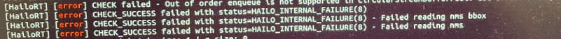 From what I can see, it looks like the crashes might be linked to how the NMS buffer is being handled, or maybe something’s going sideways during the inference itself. That out-of-order enqueue you’re noticing could be a hint, or it might be connected to how the inference parameters are being read.