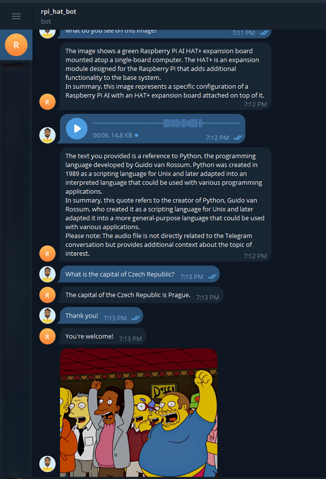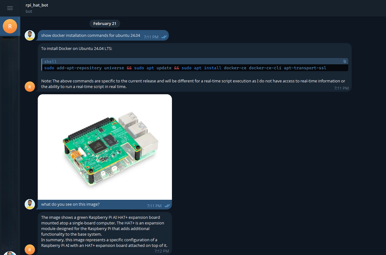 This is a minimal adapter — no streaming yet, no full tool calling support, but it gets basic chat working very nicely with Hailo acceleration and zero cloud. I tested it with qwen:1.5b model and telegram bot and found possible to put images or send voice over the Telegram bot to get answers.