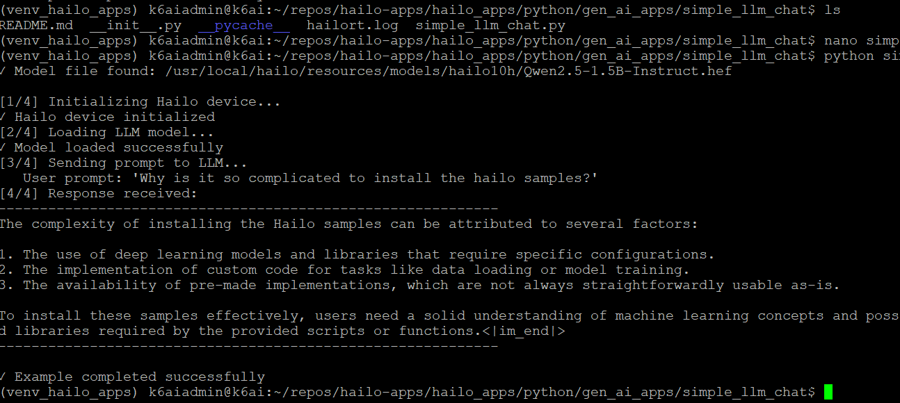 At the hardware and kernel level, everything seems fine. The device is detected correctly with hailortcli fw-control identify, firmware loads, and DKMS shows the driver built and installed (hailo_pci/4.23.0 for the running kernel). lsmod also confirms the module is loaded. I’ve installed hailo-all 4.23.0, hailort 4.23.0, hailort-pcie-driver 4.23.0, hailo-tappas-core 5.1.0, python3-hailort, and python3-hailo-tappas.