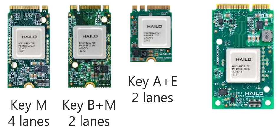 These adapters can be used with the Hailo-8 key M (recommended) or B+M module.