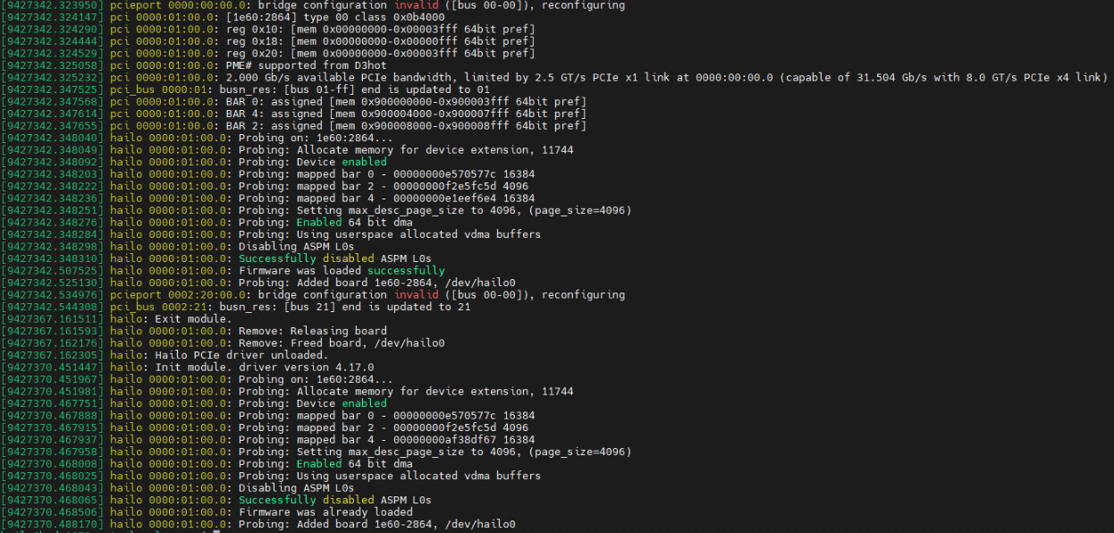$ sudo modprobe hailo_pci