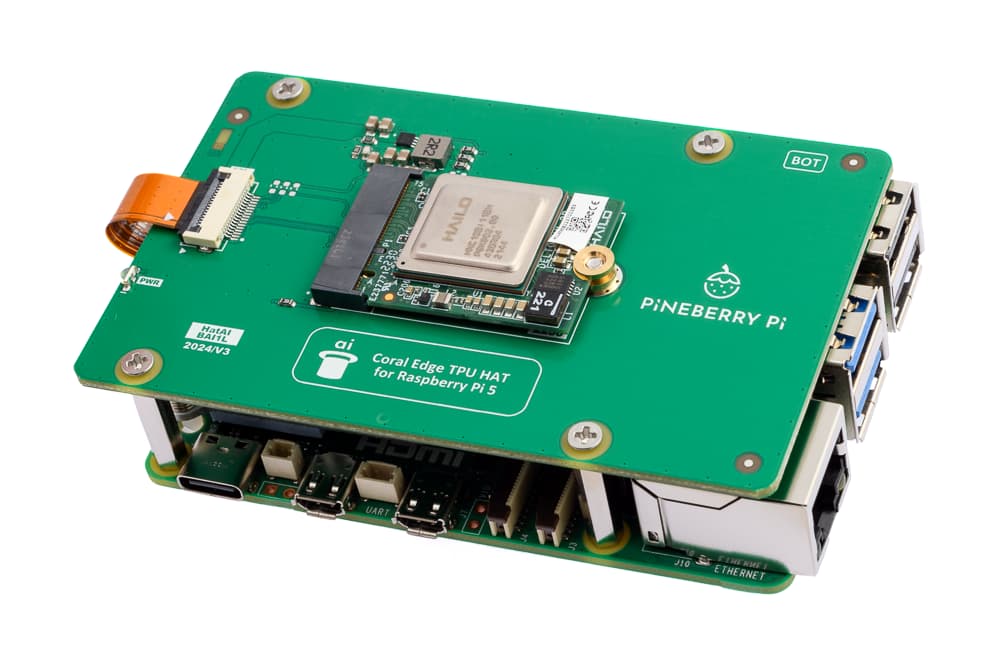 The Raspberry Pi 5 requires a hat to connect to a Hailo-8 module.