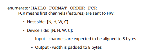 The order the data enters the device matters, as the device knows to handle specific order (NHWC), so in case the model’s format order is different, some pre-infer would be done by the Hailo SW.