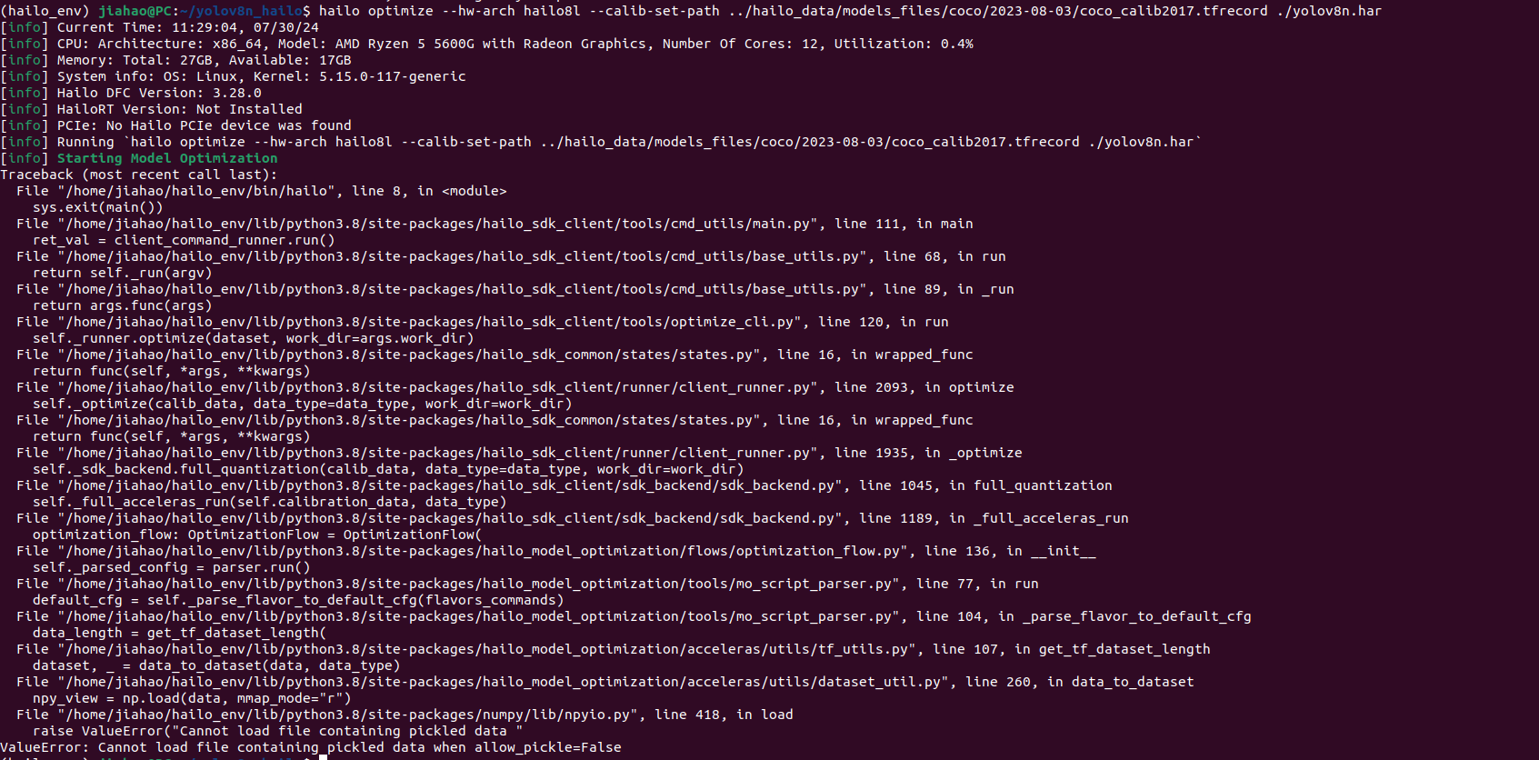 File "/home/jiahao/hailo_env/lib/python3.8/site-packages/hailo_model_zoo/main_driver.py", line 220, in optimize