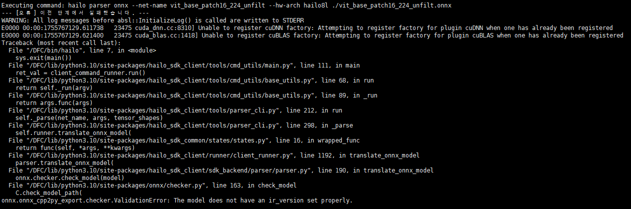I am trying to compile the vit_large_patch16_224_Opset17 model from the ONNX GitHub to use it on a Hailo-8L. However, an error like the one below occurs. (I have a picture)