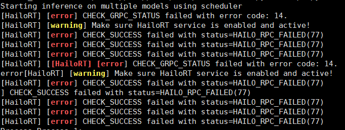 [HailoRT] [error] CHECK_SUCCESS failed with status=HAILO_RPC_FAILED(77)