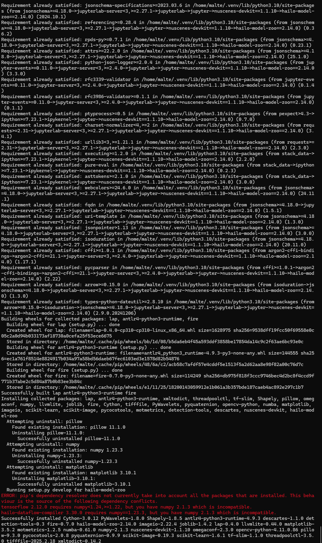 hailo-dataflow-compiler 3.30.0 requires numpy==1.23.3, but you have numpy 2.1.3 which is incompatible.