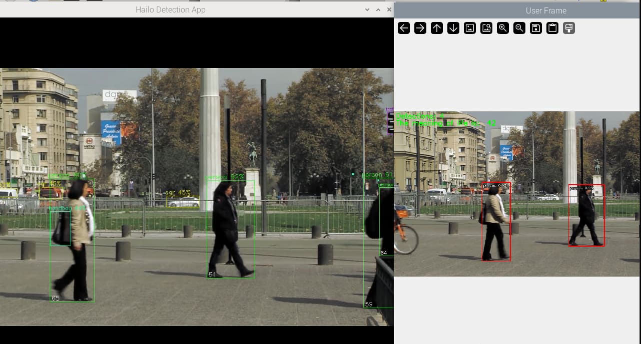 I mean, when you run the detection.py example using –use-frame argument, suddently 2 windows are opened one with all the inferences done by the hailo and other with the inference and boxes I need and with the boxes and labels I choose in the callback function