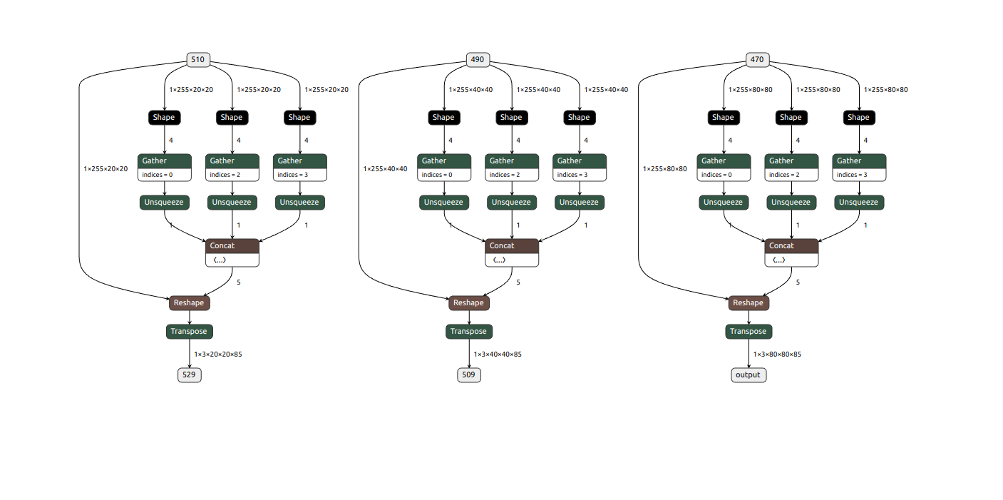 In total, for yolov5 (and yolov7) we’ll have 3 output nodes when running the Hailo Parser.