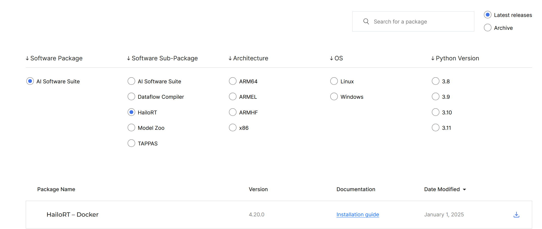 We did not release a MVTEC plugin for the current version of the Hailo Dataflow Compiler. You can get the MVTEC plugin for a previous version of the Hailo Dataflow Compiler when you select Archive.