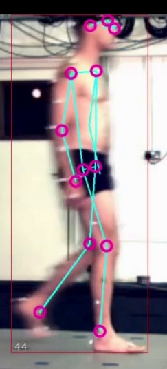 Pose estimation shows lines connecting some pairs of the 17 keypoints to draw a human stick figure and then rings are drawn on some of the keypoints. It seems that the keypoints identified with higher confidence get a ring, the ones with lower confidence don’t get a ring e.g. when the body part is obstructed or is on the other side of the body.