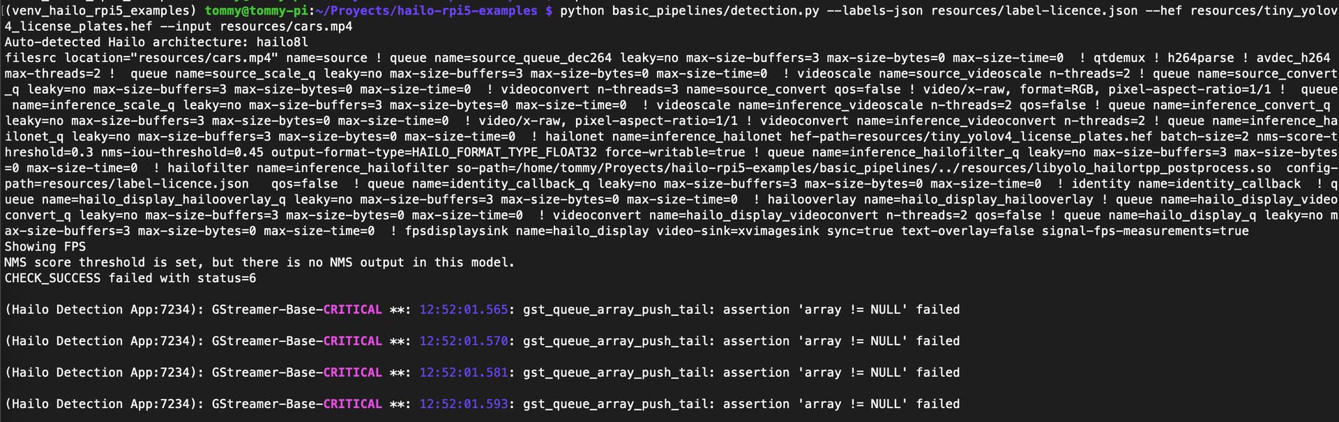 (Hailo Detection App:7234): GStreamer-Base-CRITICAL **: 12:52:01.565: gst_queue_array_push_tail: assertion ‘array != NULL’ failed