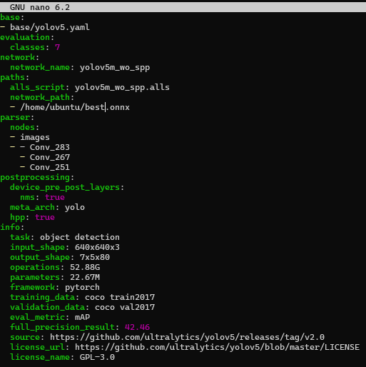 hailomz compile --ckpt /home/ubuntu/best.onnx --calib-path /home/ubuntu/datasets/calib/ --yaml /home/ubuntu/hailo_model_zoo/hailo_model_zoo/cfg/networks/yolov5m_wo_spp.yaml --classes 7