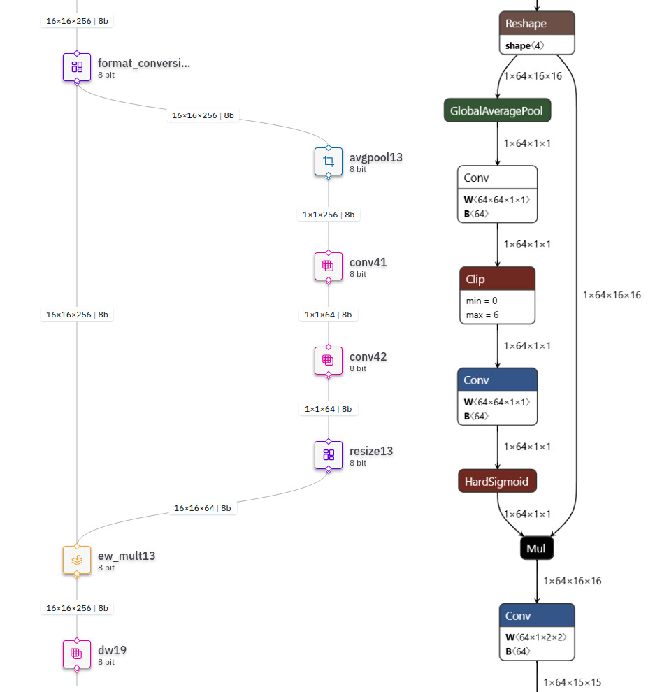 As shown in the figure, in the ONNX structure, the tensor is converted to [1, 64, 16, 16] after reshape.