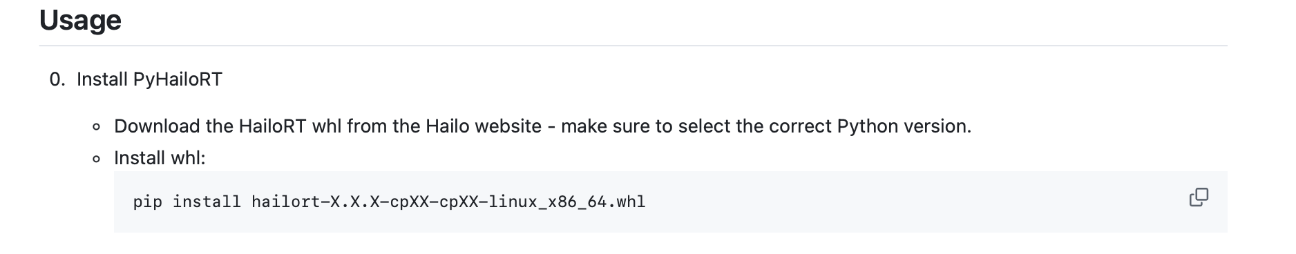 pip install hailort-X.X.X-cpXX-cpXX-linux_x86_64.whl
