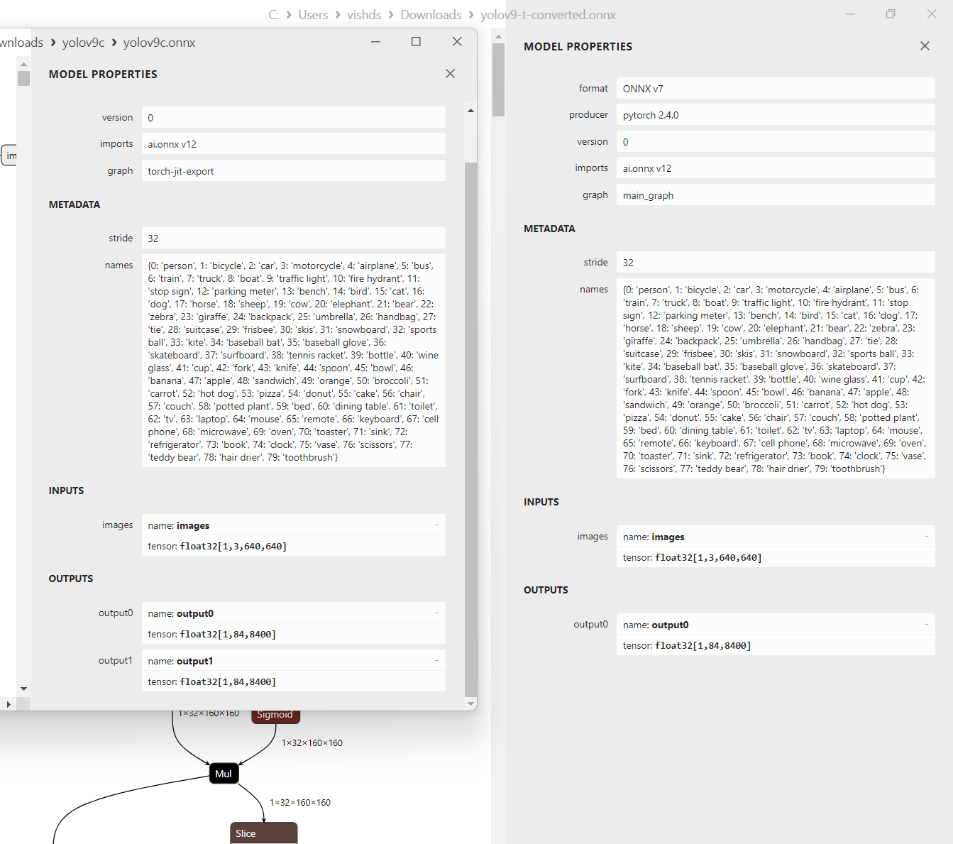 Note that this onnx file is slightly different from the yolov9c in the model-zoo, as it was optimized to remove an auxiliary branch that’s only required for training.
